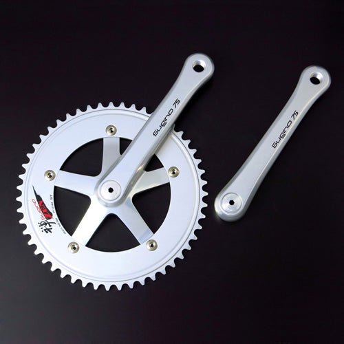 The world-famous chainwheel set used by Olympic and World Championship medalists. Combination of highest quality track racing crank Sugino75 and Super-rigid ZEN144 chainring.